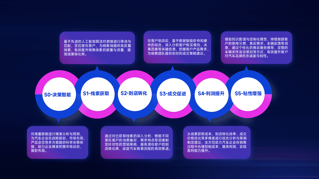 通过拓宽潜在客户来源、、优化线索分配并提高到店转化率,,,,以增强销售效率。。。。同时,,利用线索数据不断优化分析模型,,有效提升转化率,,扩大营销影响力。。
